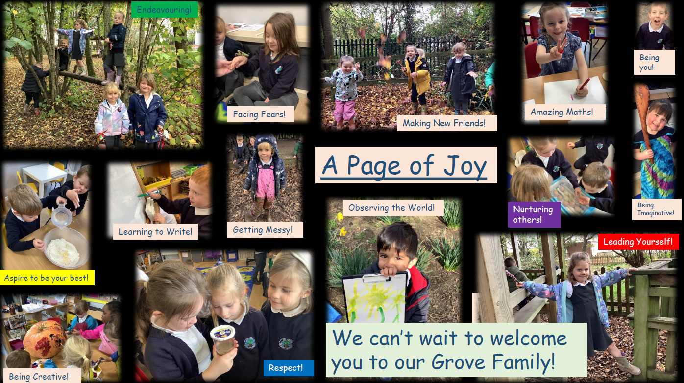 We welcome visits from prospective parents at any time. Please contact the school office on 01225 755242 or e-mail us admin@grove.wilts.sch.uk to arrange a convenient time. Children are welcome on the visit which will involve a tour of the school by the Headteacher or Deputy Headteacher and a chance to ask any questions.